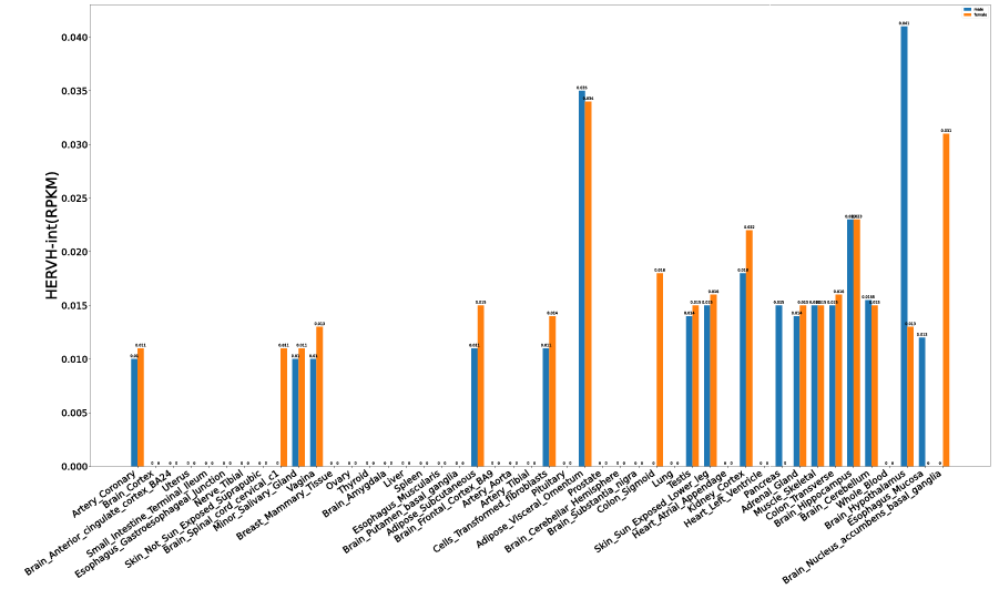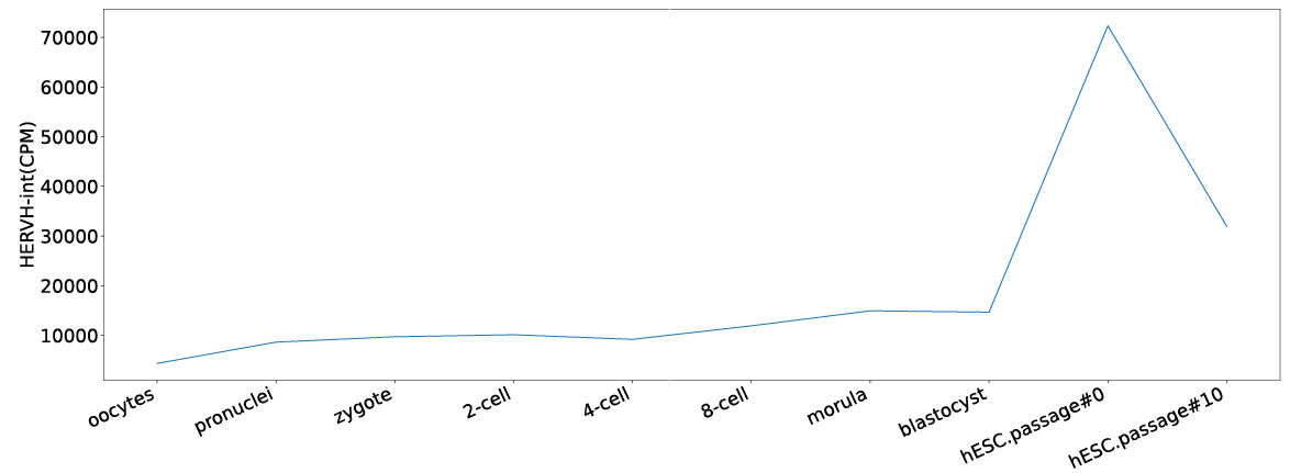 Additionally, based on the expression profiles, users can explore ERV expression levels during early embryogenesis, in adult human tissues, and across cancer cell lines.